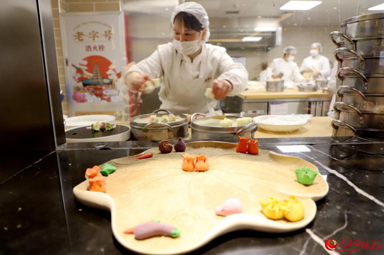 德發(fā)長創(chuàng)建于1936年,作為一家中華老字號,一道具有濃郁文化特色的“千古風(fēng)味”餃子宴已然成為西安的一張“金色名片”。高珊是德發(fā)長鐘樓店的一名非遺傳承人,那些倍受顧客歡迎、形狀各異的餃子正是出自她們團(tuán)隊之手。