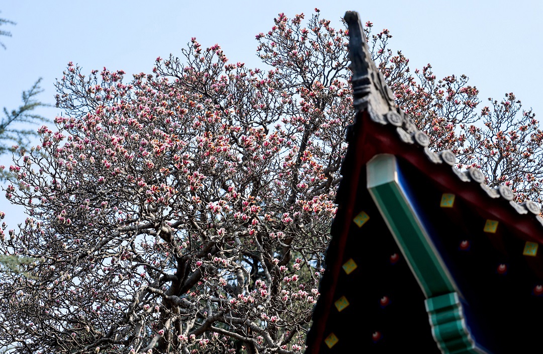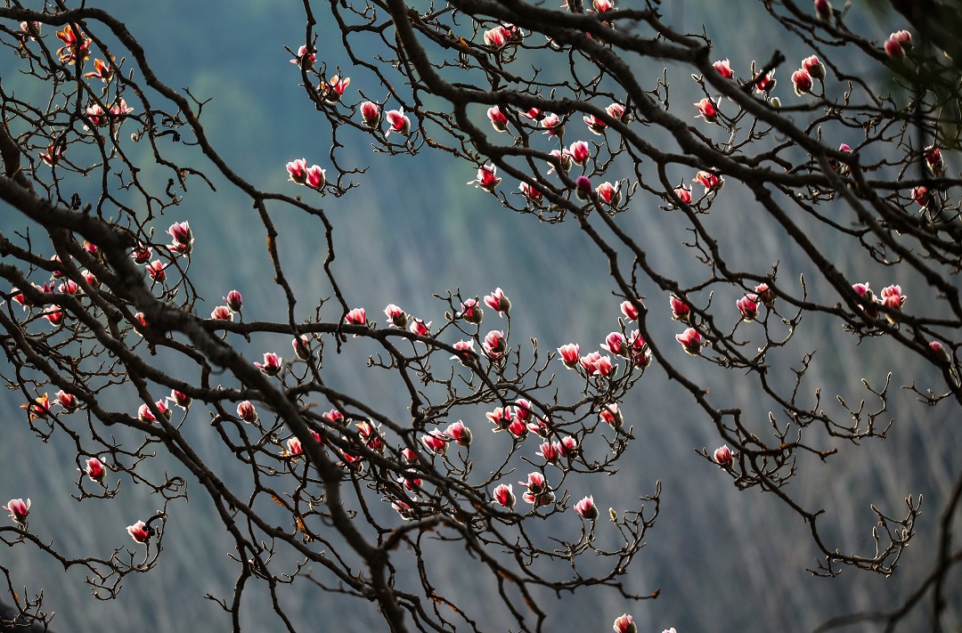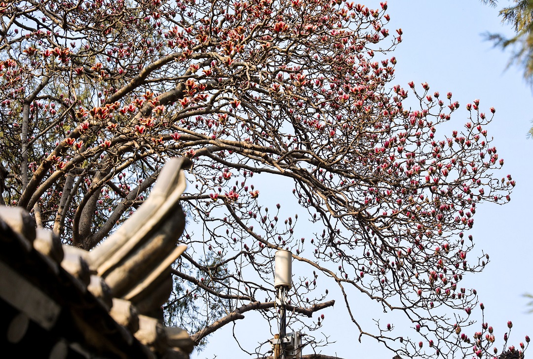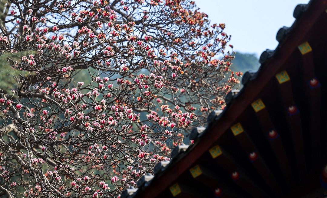 3月15日,位于秦嶺終南山下南五臺(tái)的兩株千年古玉蘭優(yōu)雅綻放,粉色花朵綴滿(mǎn)枝頭,清香陣陣,沁人心脾,為古城西安的春天增添了一道亮麗的風(fēng)景。
