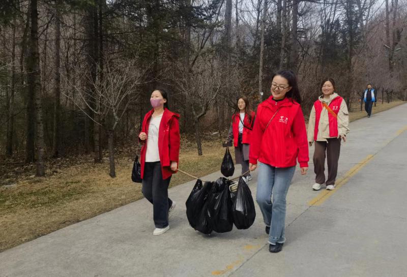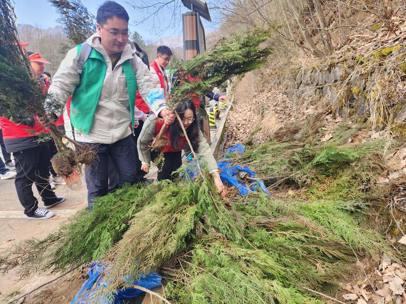 中午時分,當(dāng)植樹任務(wù)完成大家稍作休息后,陜西公眾信息產(chǎn)業(yè)有限公司50多名員工又馬不停蹄地拿上垃圾袋撿拾山里的垃圾,他們心懷對大自然的敬畏之心,手持勞動工具和垃圾袋,分工協(xié)作、相互配合,井然有序地穿梭在山林里、河道旁,把游客遺落的垃圾撿拾干凈……“這些‘紅馬甲’志愿者們是公司團委的青年科技工作者,平均年齡只有28歲,平日里他們是踐行網(wǎng)絡(luò)強國和數(shù)字中國、實現(xiàn)科技自立自強征程上的‘追夢人’,今天來到山野間,他們化身為捍衛(wèi)秦嶺生態(tài)的‘清道夫’,俯拾間‘清’出一片愜意的綠水青山,舉手間綻放一抹絢麗的青春色彩?!痹摴緢F委書記王世頂說。