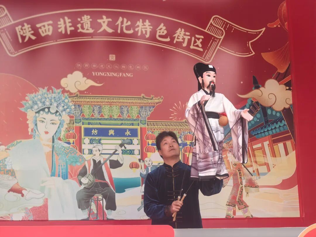 西安永興坊內(nèi),木偶“李白”與游客互動(dòng) 秦毅 攝